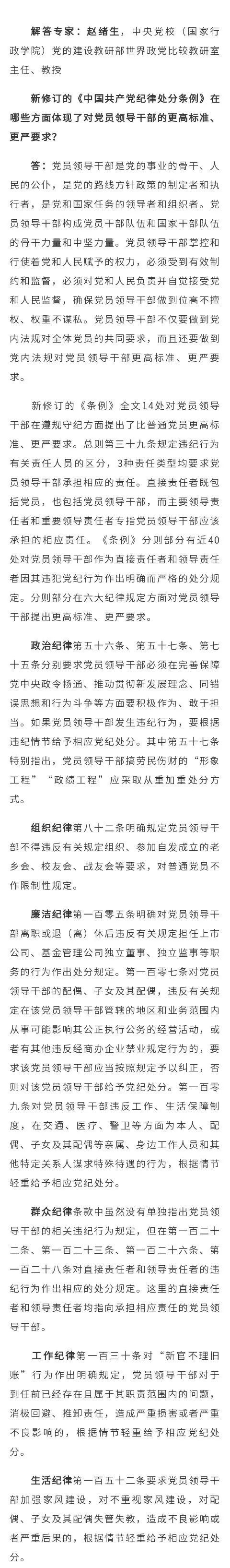 學習問答丨新修訂的《條例》在哪些方面對黨員領導干部提出更高標準、更嚴要求?