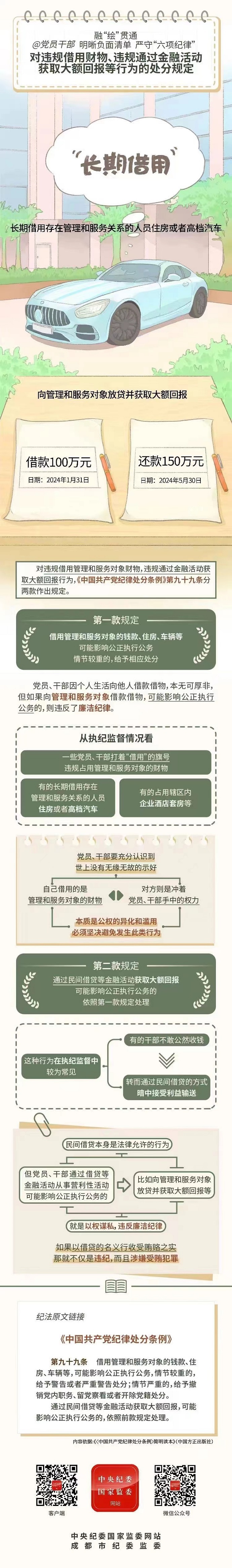 漫畫說紀丨對違規借用財物、違規通過金融活動獲取大額回報等行為的處分規定
