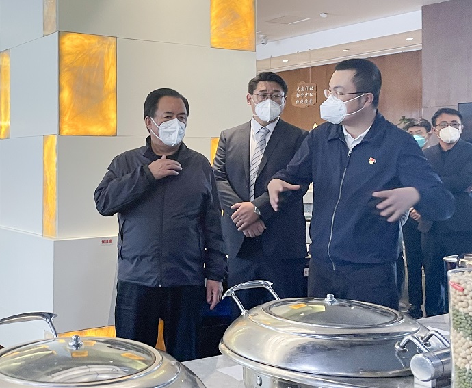 多吉次珠一行詳細察看了西藏開投邦錦花園酒店出入登記點、留觀室、疫情防控物資儲備室、全日制餐廳等區域,聽取了酒店疫情防控工作匯報。聽取匯報后,多吉次珠對酒店全力做好一線抗疫醫務工作者和公安民警后勤保障工作給予高度評價。他指出,西藏開投邦錦花園酒店站位高、有擔當,主動承擔抗疫一線干部職工保障工作重要任務,充分彰顯了國企擔當、國企速度、國企精神,有力發揮了國資國企的“頂梁柱”作用。