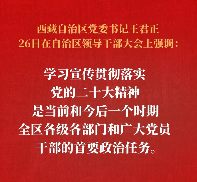 祁騰武要求,當前,一是要迅速掀起學習宣傳貫徹二十大精神的高潮。要突出學原文悟原理知原義,通過召開座談會、研討會、專家輔導講座等多種形式,切實把學習宣傳貫徹落實黨的二十大精神與習近平總書記關于西藏工作的重要指示和新時代黨的治藏方略結合起來,與自治區第十次黨代會精神結合起來,推動學習宣傳貫徹黨的二十大精神走深走實。二是要統籌推進復工復產、電力保供和項目建設工作,切實發揮作為全區骨干國有企業穩經濟大盤作用,確保黨的二十大提出的新部署新要求見行見效,把黨的二十大精神切實轉化為集團公司統籌經濟效益和社會效益的生動實踐。三是要對標對表集團公司“三步走”戰略目標和年度經營發展任務,把學習成效轉化為推動“三步走”跨越式發展、決戰四季度生產經營工作、堅決完成全年任務目標的不竭動力,確保黨的二十大精神在西藏開投落實落地、開花結果。四是要善始善終,堅決打贏疫情防控攻堅戰。堅定必勝信心,克服麻痹思想、僥幸心理、厭戰情緒、松勁心態,堅決守護好來之不易的抗疫成果,堅決扛起抗疫保供的國企擔當,以實際行動貫徹落實黨的二十大精神。