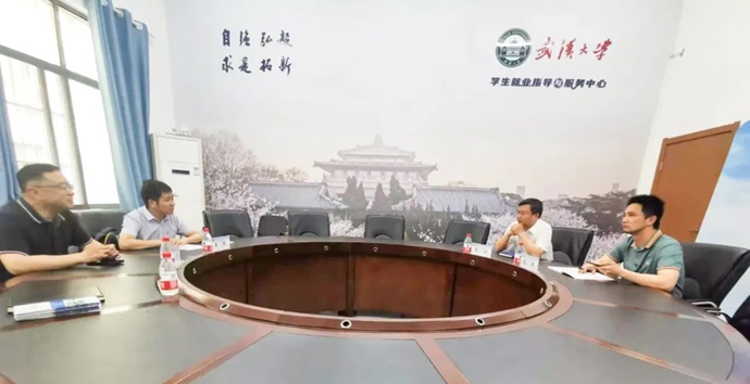 (溫勇與武漢大學就業指導與服務中心主任龍濤座談)