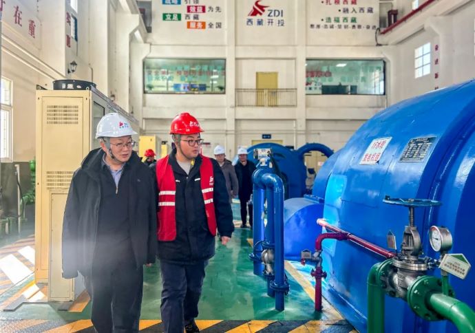 祁騰武(左一)調研嘎堆水電站安全生產工作。楊小梅 攝
