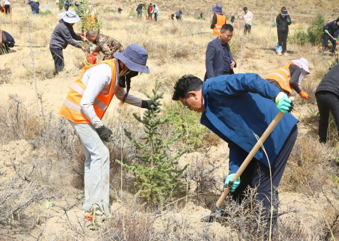 植樹前,劉剛作動員講話。他指出,開展義務植樹是深入貫徹習近平生態文明思想、開展國土綠化行動的具體舉措,是一項功在當代、利在長遠的戰略任務。全體黨員干部職工要牢固樹立“綠水青山就是金山銀山、冰天雪地也是金山銀山”的生態理念,錨定全區“四件大事”,認真完成好南北山綠化工程,在創建生態文明高地中發揮國企擔當。
