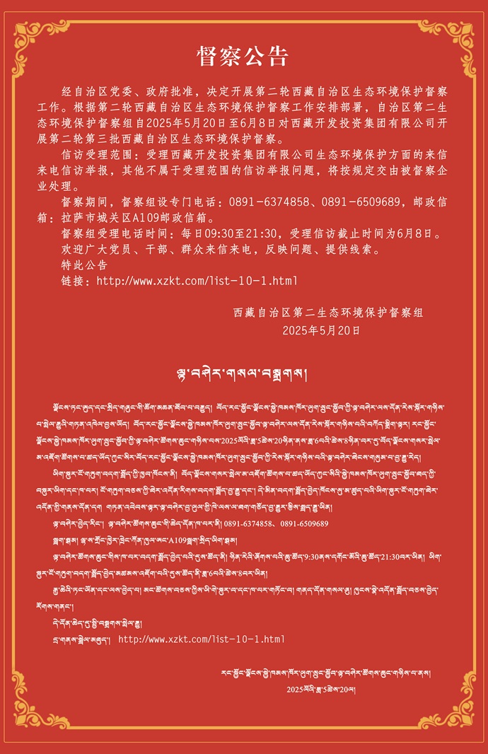 西藏自治區第二生態環境保護督察組進駐西藏開發投資集團有限公司開展第二輪生態環境保護督察