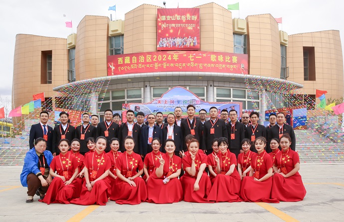 6月28日晚,西藏阿里群眾文化藝術館人潮涌動,歌聲飛揚。由自治區黨委宣傳部主辦的“西藏自治區2024年迎‘七一’暨‘唱支山歌給黨聽’紅色歌曲歌詠比賽決賽正式拉開帷幕,共有來自全區不同單位行業的15支代表隊伍同臺競技,共同獻禮黨的百年華誕。當晚21時,開幕式準時開始。在多彩燈光的映襯下,象雄古韻·天上阿里的原生態和《再唱山歌給黨聽》《沒有共產黨就沒有新中國》《我和我的祖國》等一曲曲耳熟能詳的紅色歌曲交相輝映、相繼登場,將全區各族兒女和廣大黨員干部職工愛黨愛國愛藏的情懷淋漓盡致展現。