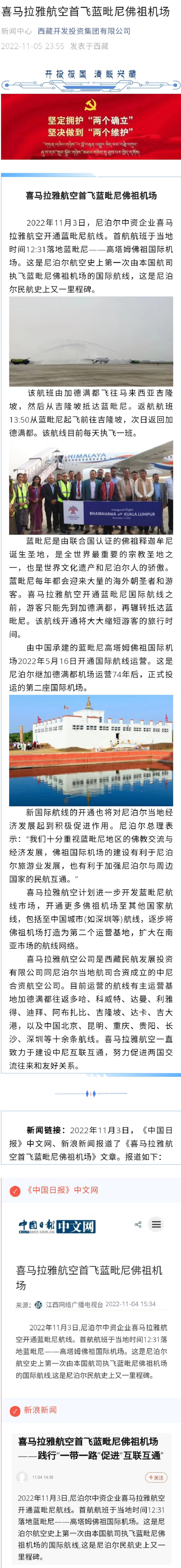 中華網、中國網、中企網、中國日報、光明日報、中國旅游新聞網、中國西藏新聞網、拉薩新聞網等媒體報道喜航開通加德滿都至藍毗尼航線