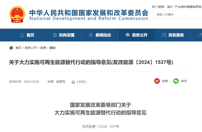 為全面貫徹黨的二十大和二十屆二中、三中全會精神,深入落實黨中央、國務院關于碳達峰碳中和重大決策部署,促進綠色低碳循環發展經濟體系建設,推動形成綠色低碳的生產方式和生活方式,現就大力實施可再生能源替代行動,制定意見如下。
