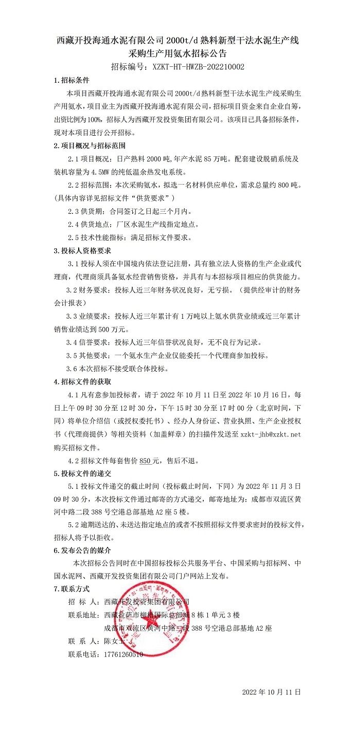 西藏開投海通水泥有限公司2000t/d熟料新型干法水泥生產線