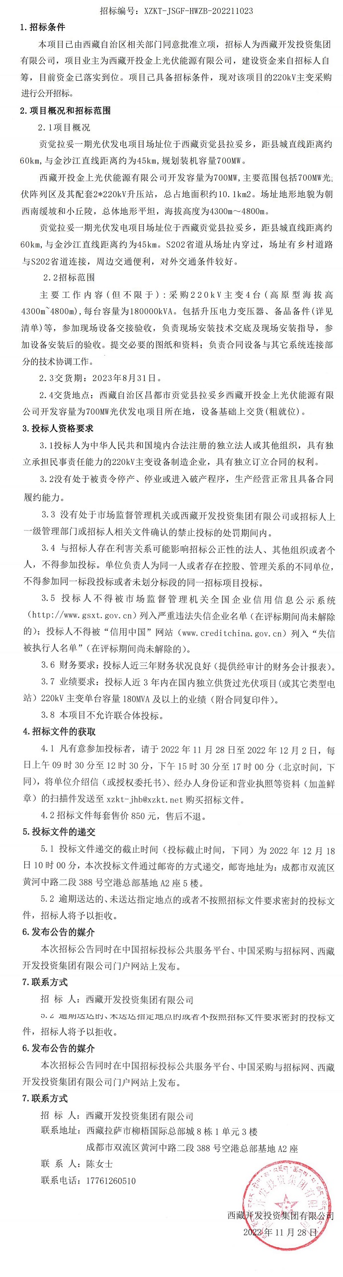 220kV主變采購招標公告