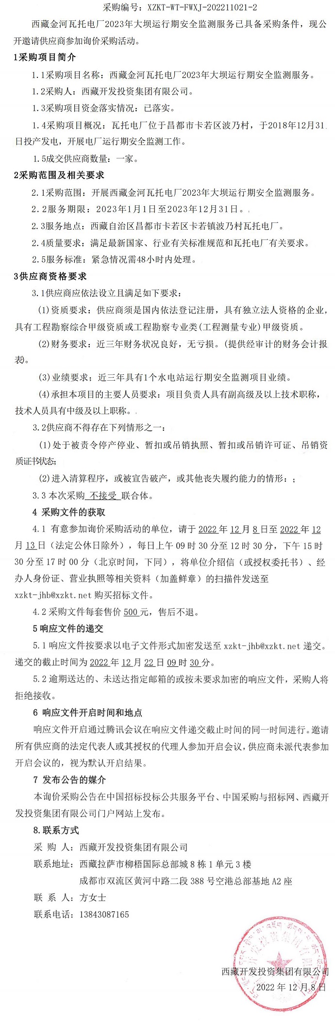 西藏金河瓦托電廠2023年大壩運行期安全監測服務