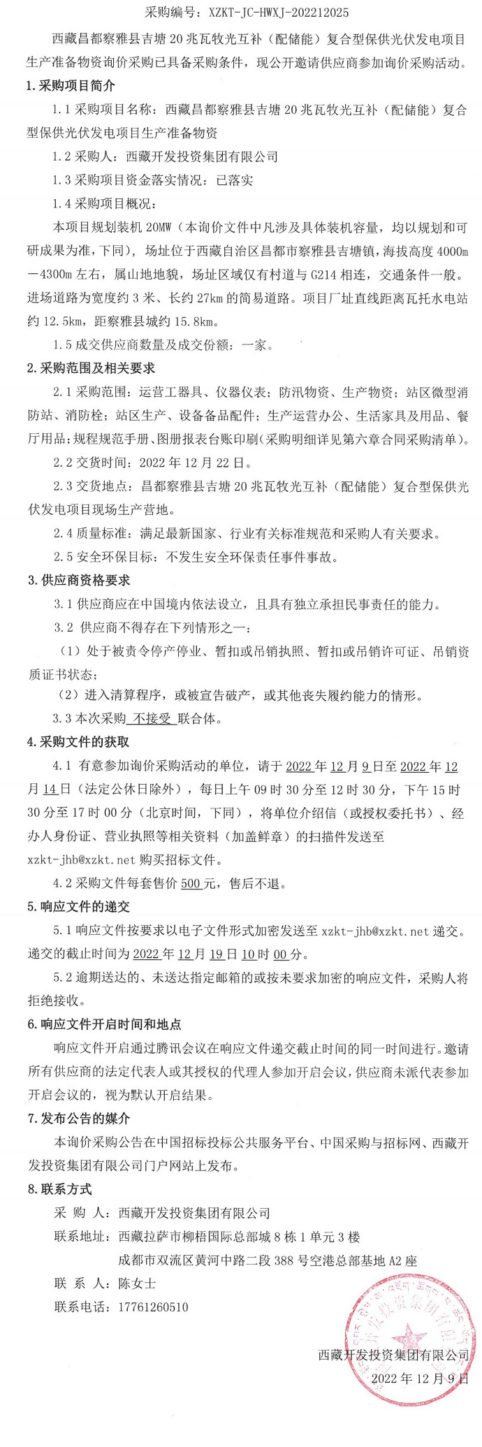 西藏昌都察雅縣吉塘20兆瓦牧光互補(配儲能)復合型保供