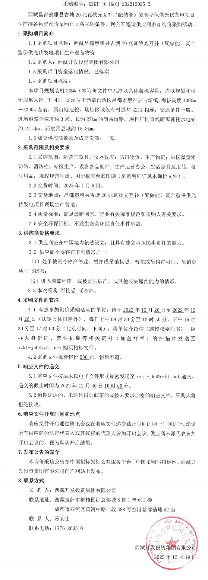 西藏昌都察雅縣吉塘 20 兆瓦光補(配儲能)復合保供光伏發電項目