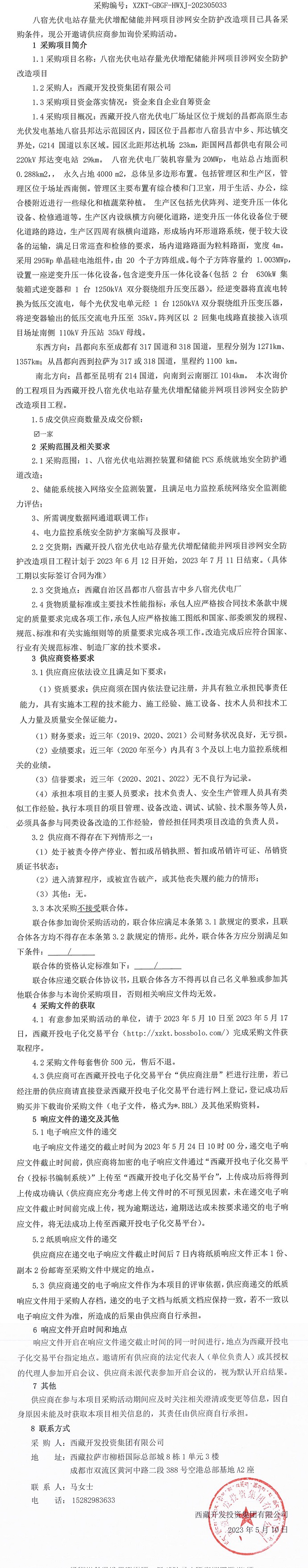 八宿光伏電站存量光伏增配儲能并網項目涉網安全防護改造項目詢價采購公告