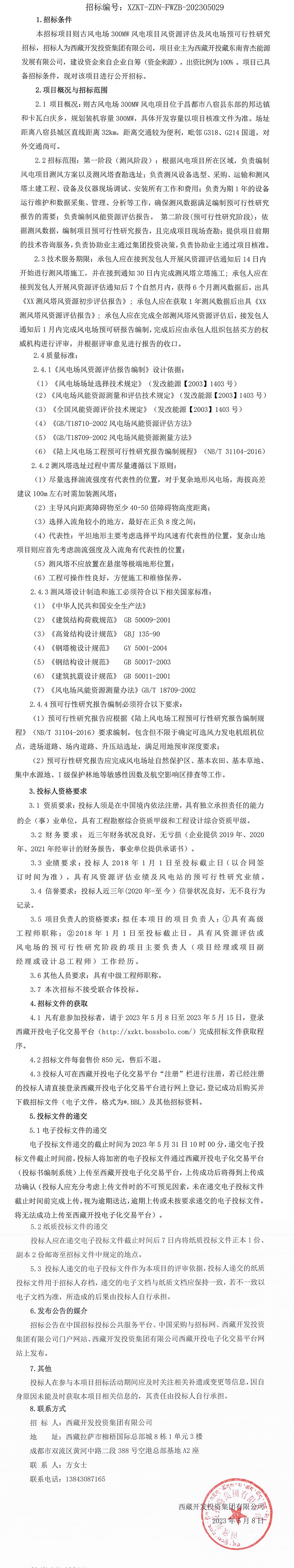 衛達風電場200MW風電項目風資源評估及風電場預可行性研究招標公告