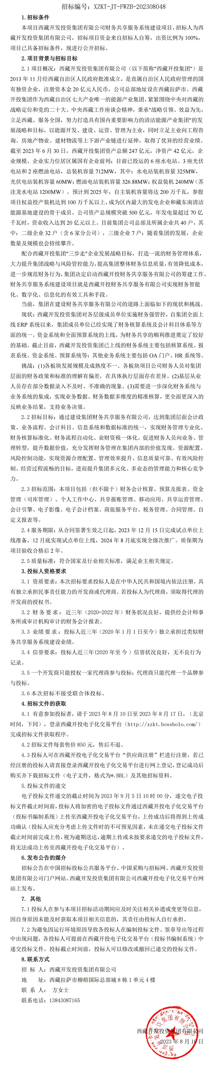 西藏開發投資集團有限公司財務共享服務系統建設項目