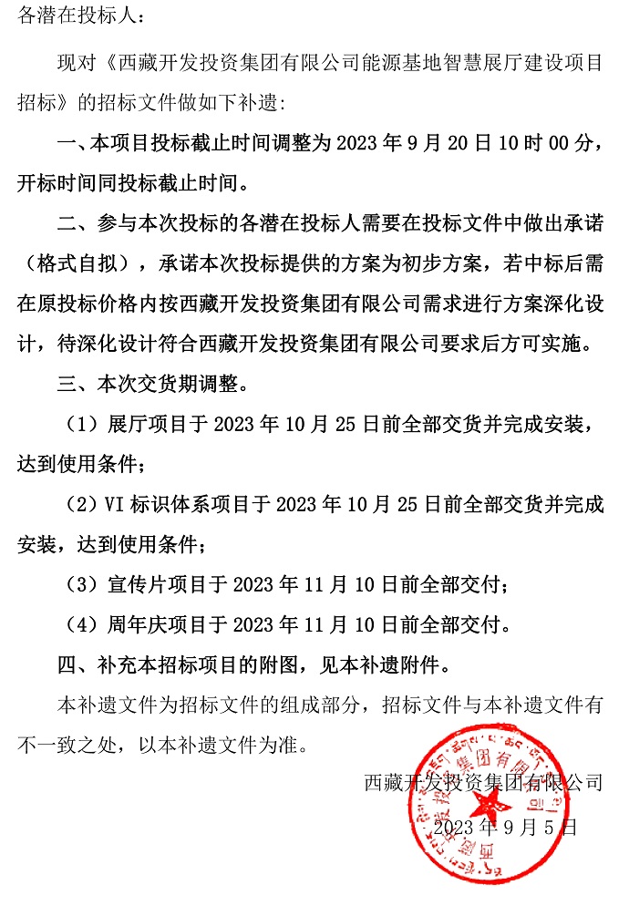 西藏開發投資集團有限公司能源基地智慧展廳建設項目招標