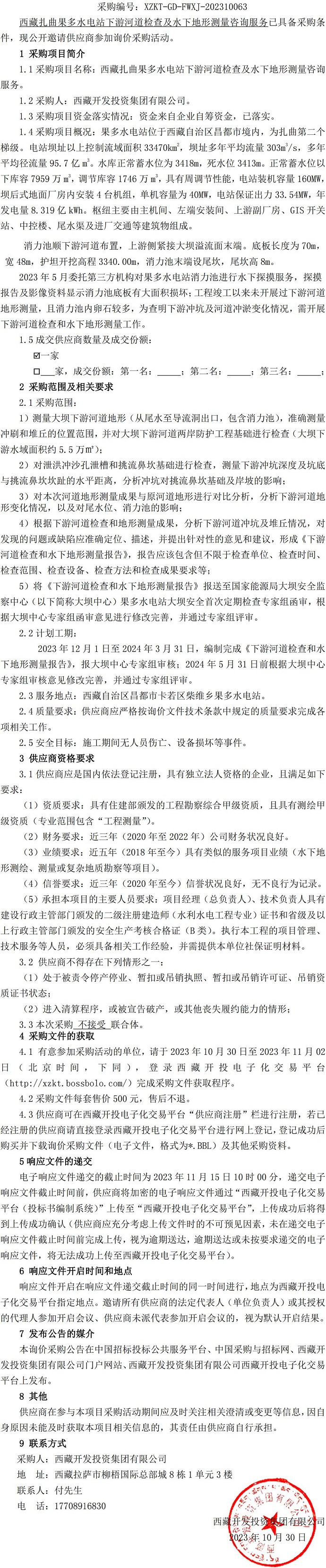 西藏扎曲果多水電站下游河道檢查及水下地形測量咨詢服務詢價采購公告