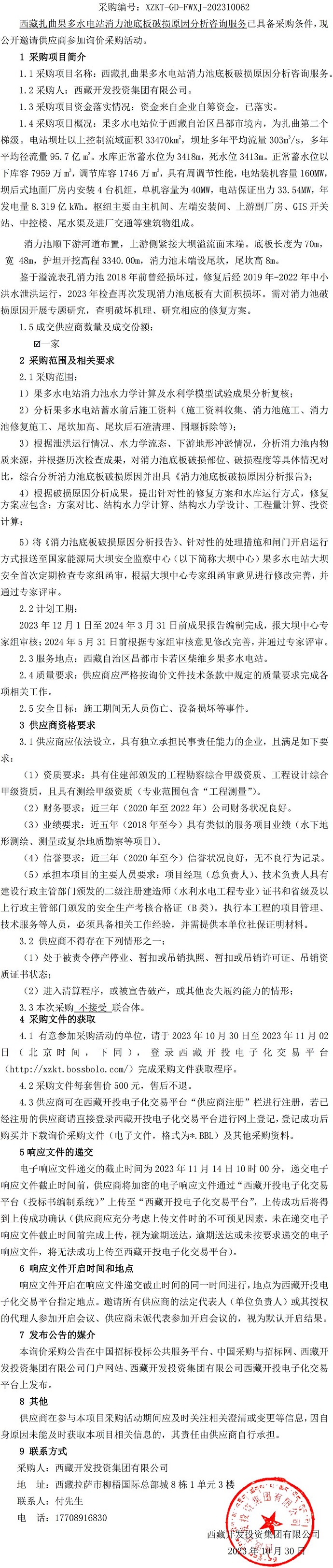 西藏扎曲果多水電站消力池底板破損原因分析咨詢服務詢價采購公告