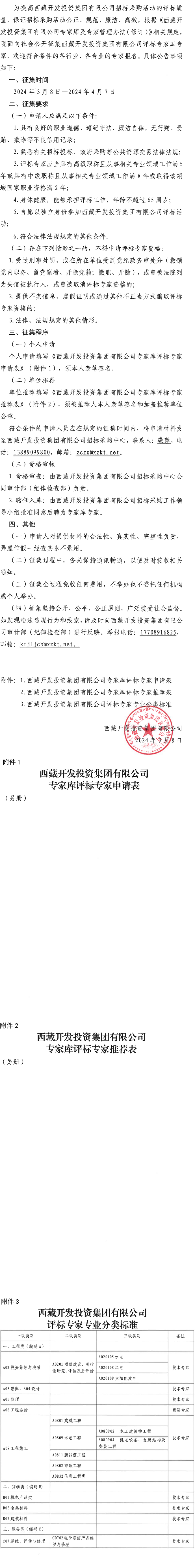 西藏開發投資集團有限公司評標專家庫專家征集公告