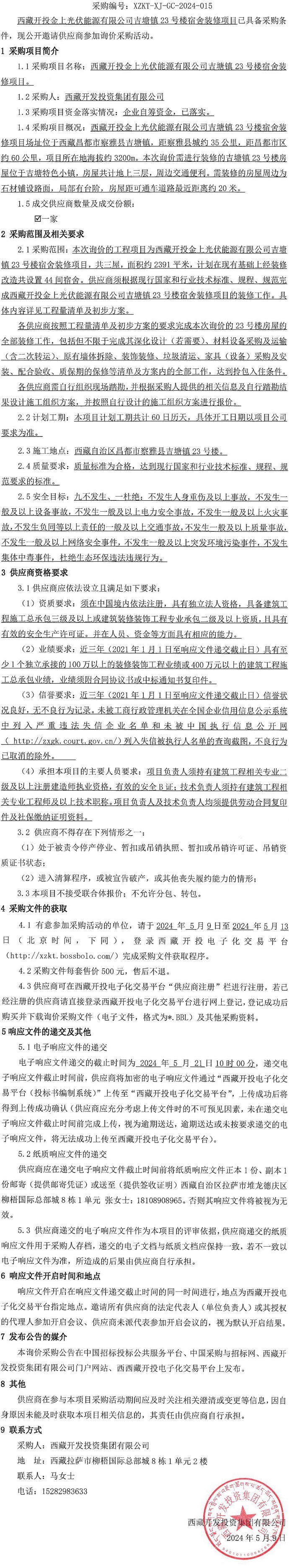 西藏開投金上光伏能源有限公司吉塘鎮23號樓宿舍裝修