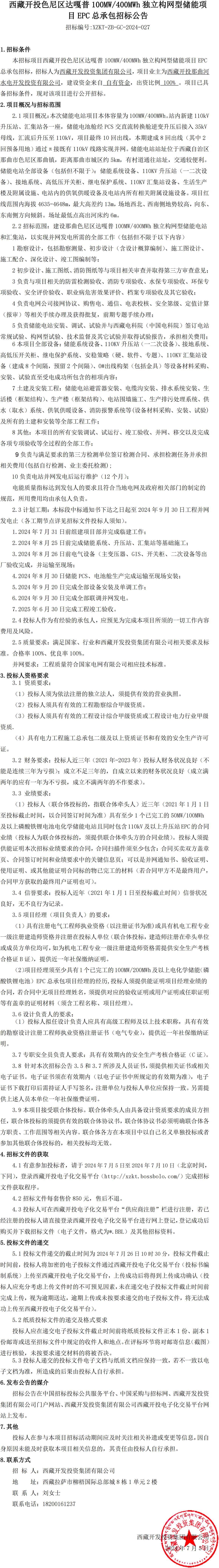 西藏開投色尼區達嘎普100MW400MWh獨立構網型儲能項目EPC總承包公告