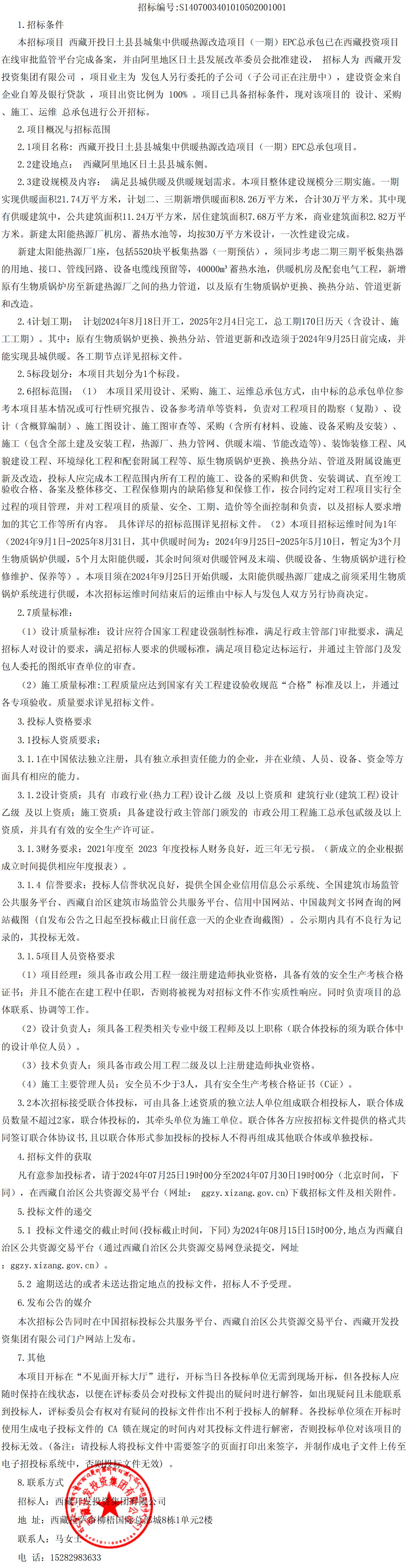 西藏開投日土縣縣城集中供暖熱源改造項目(一期)EPC總承包招標項目招標公告