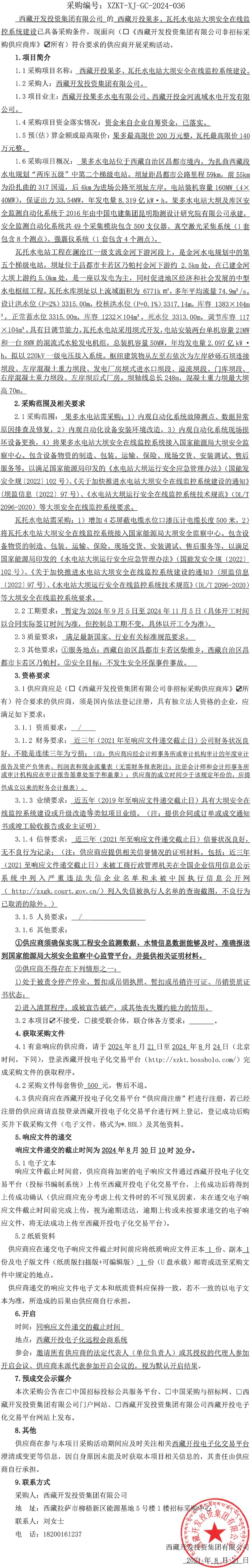 西藏開投果多、瓦托水電站大壩安全在線監控系統建設詢價采購公告