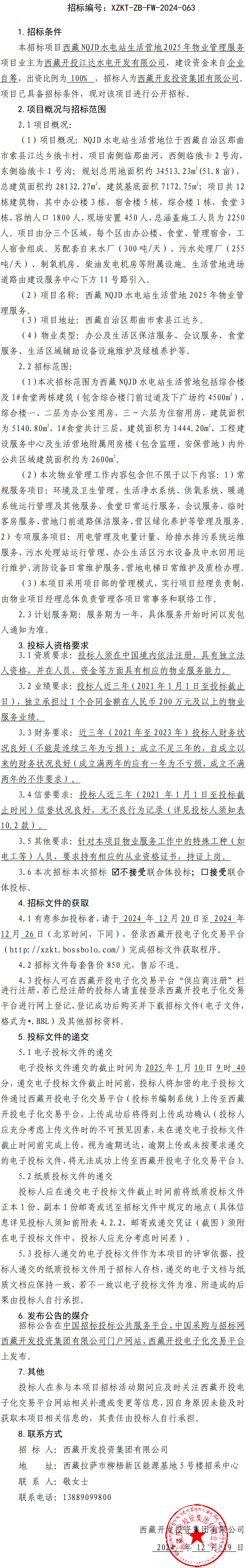 西藏NQJD水電站生活營地 2025 年物業管理服務招標公告